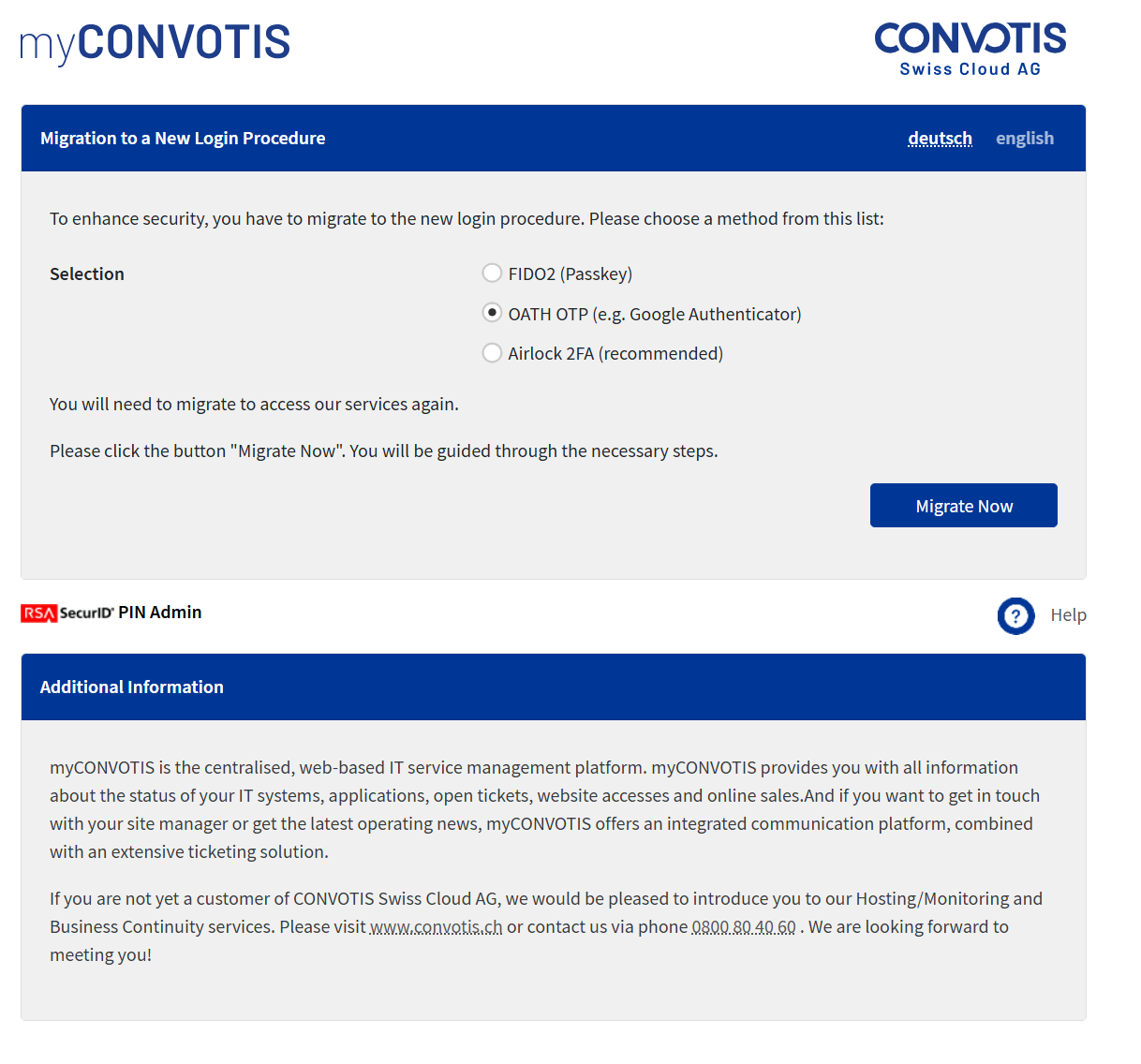 Select OATH OTP as the second factor and click “Migrate Now”.