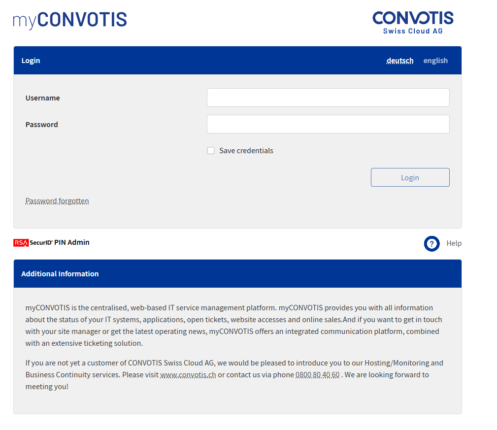 In this case, please use an incognito window (or private window) of your browser. If you do not have this option, please clear both your cache and your cookies, and try to log in again at https://www1.myconvotis.ch.